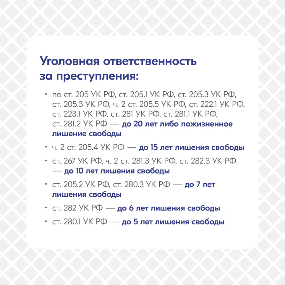 Информация об ответственности за преступления террористического и экстремистского характера